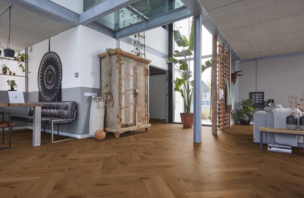 Geolied parket straalt warmte en authenticiteit uit dankzij zijn natuurlijke, matte afwerking die de unieke houtstructuur prachtig accentueert. De olie dringt diep door in het hout, wat zorgt voor een duurzame bescherming van binnenuit. Door het hout regelmatig te verzorgen, blijft het parket niet alleen mooi, maar behoudt het ook zijn karaktervolle uitstraling voor jarenlang woonplezier.